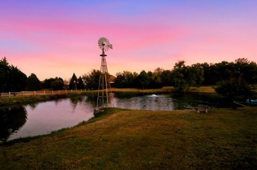 Experience picturesque, tranquil country living on approximately 2.4 acres in beautiful Sunnyvale. From the moment you pass through the electric iron-gated entrance, this property captivates you with its mature trees, scenic views, and charming red barn-style workshop complete with a rooftop weathervane, and a oversized weather garden windmill overlooking the pond, the perfect blend of rustic elegance and modern comfort. Outdoor living is the highlight of this property. Enjoy a sparkling swimming pool with spa, a covered arbor deck ideal for entertaining, a stocked pond with fishing dock, and a cozy fire pit for relaxing evenings under the stars. Inside, the home offers 4 bedrooms, 3 full baths, formal dining or office and a 2-car attached oversized garage. The detached workshop makes a great animal space, partially fenced area for easy access to the building and accommodates one additional vehicle not to mention it provides ample space for projects or storage. The thoughtful floor plan includes a private guest suite with its own bath just off the kitchen, ideal for visitors or multi-generational living. The main living area showcases stunning backyard views through large windows that flood the home with natural light. A see-through fireplace connects the living room and kitchen, creating a warm, cohesive atmosphere. The kitchen features granite countertops, a center island, double ovens, under-cabinet lighting, and a generous pantry. The primary suite offers patio access, dual walk-in closets, and a luxurious bath with separate vanities, garden tub, and separate shower. Upstairs, a spacious game room and a large storage closet with built-in shelving lead to additional attic space. Enjoy peaceful country living just 15 minutes from Downtown Dallas, new Tom Thumb Grocery opening soon and with easy access to major highways, truly the best of both worlds!